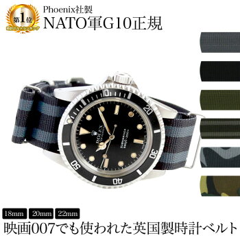 バネ棒付き 時計 ベルト 腕時計 Phoenix フェニックス社製 NATO軍 G10正規 ナイロンス トラップ 時計ベルト