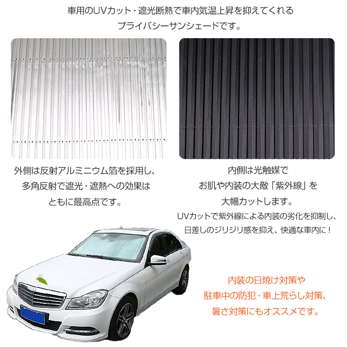 ● 車内温度上昇抑止にとても効果的、車中泊や仮眠時の目隠しとしても最適です! ● 伸縮自在のプリーツは、自動収縮タイプで耐久性に優れ、折れにくい設計になっています。