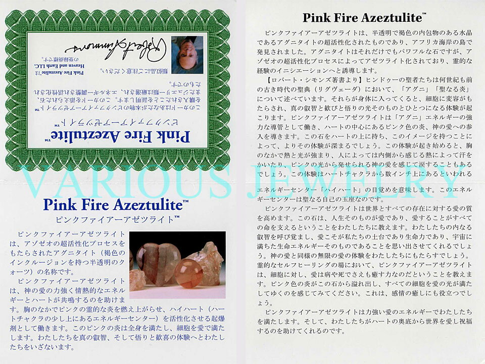 【Heaven&Earth社】【アゾゼオ】【ピンクファイアーアゼツライト】 ブレスレット 10mm