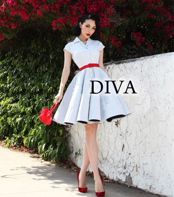 Vネック襟にフレアなデザインがブリジットバルドーやオードリーヘップバーンのような往年の女優を思い出させるクラシカルで上品なミディアムワンピースは季節を楽しめるアイテムです!!★